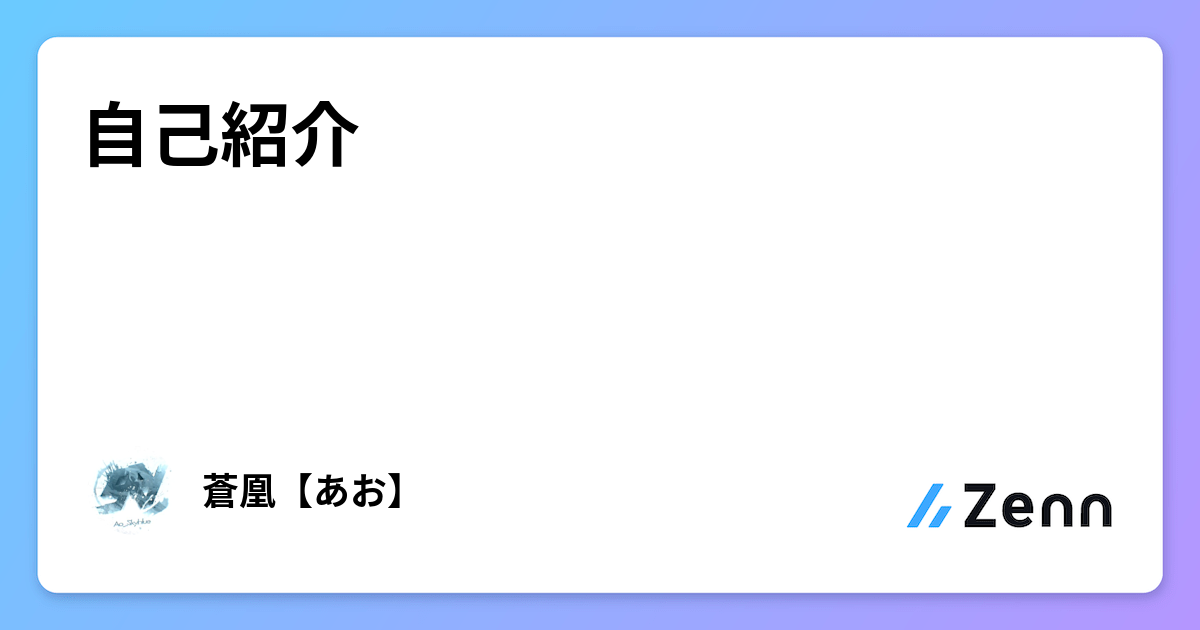 自己紹介 2003年生まれ、東京在住の蒼凰【あお】と申します。自分の勉強のインプットとして、日記の代わりとしてZennにて記事を書いていこうと考えております。も...